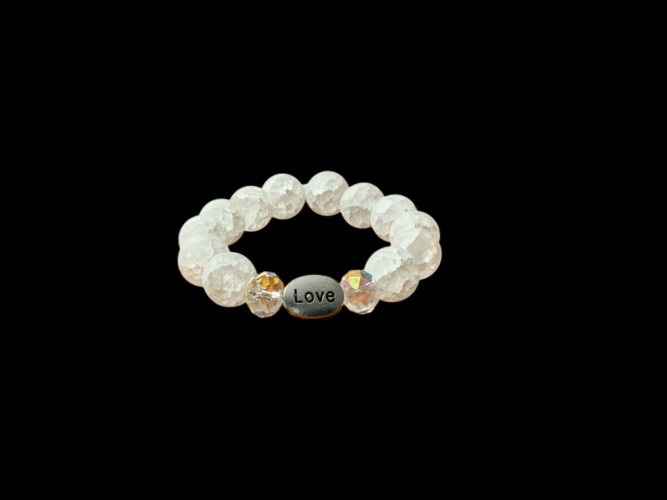 Embrace your faith with this exquisite handcrafted designer bracelet, featuring the powerful word “Love” beautifully crafted. Each bracelet is meticulously made with lustrous Quartz beads, offering a timeless elegance and a deep spiritual connection.