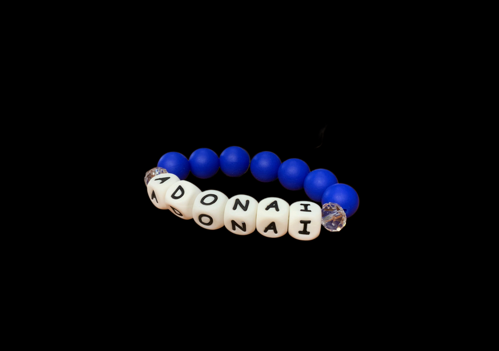 Embrace your faith with this exquisite handcrafted designer bracelet featuring the powerful name “Adonai” which is the Hebrew word meaning “My Lord, Master.” We see this name used in Bible verses Isaiah 45:2-25. ” I am ADONAI: there is no other; besides me there is no God.” Also in these other scriptures, Psalms 117:1 , Deuteronomy 6:4-6 , Genesis 15:1-6, Habakkuk 3:19 , Psalm 118: 1-25 . Each bracelet is meticulously made with silicone blue beads, offering a timeless elegance and a deep spiritual connection.
