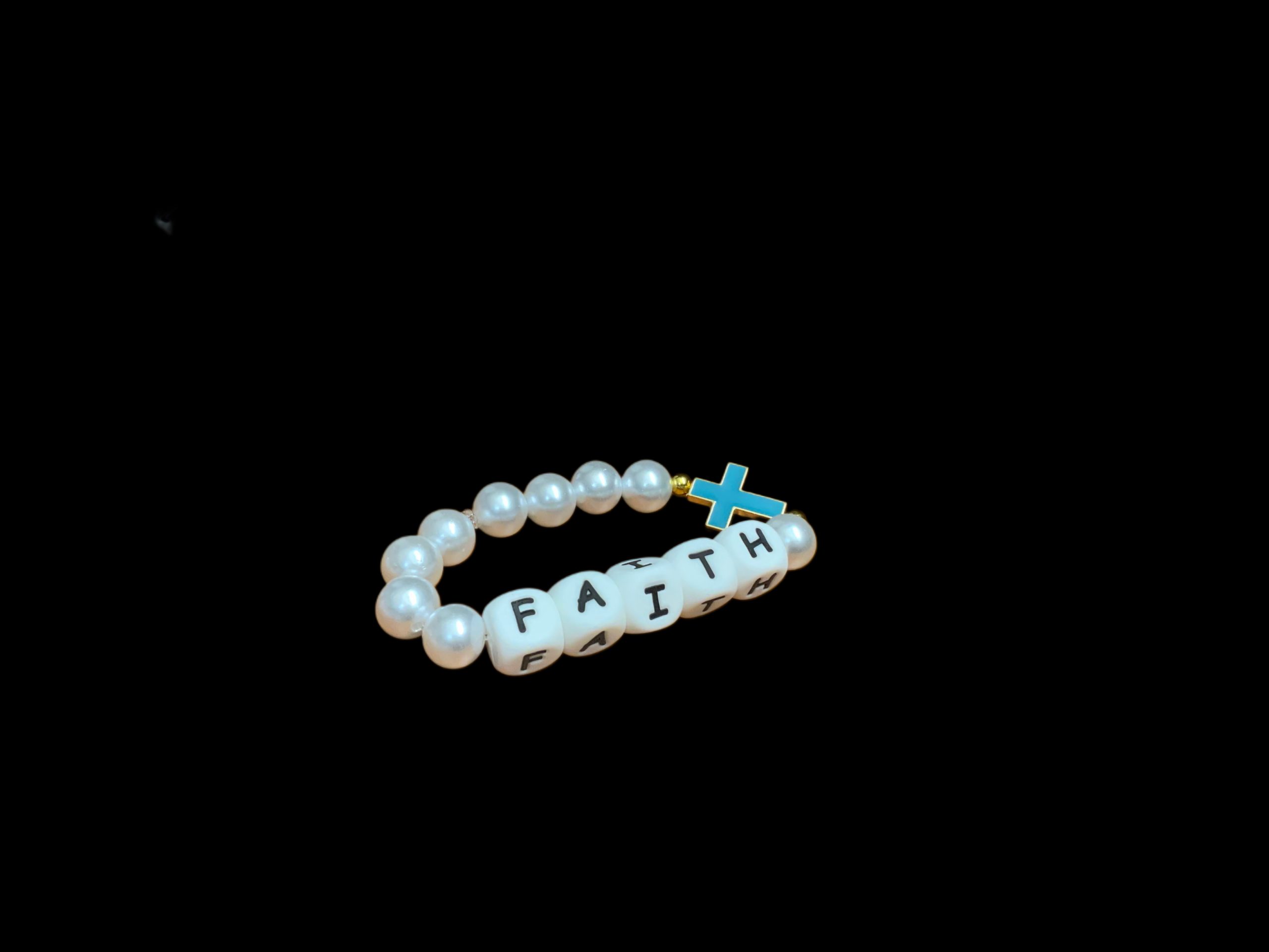 Embrace your faith with this exquisite handcrafted designer bracelet, featuring the cross and the word FAITH beautifully crafted. Each bracelet is meticulously made with lustrous  white pearl beads, offering a timeless elegance and a deep spiritual connection.