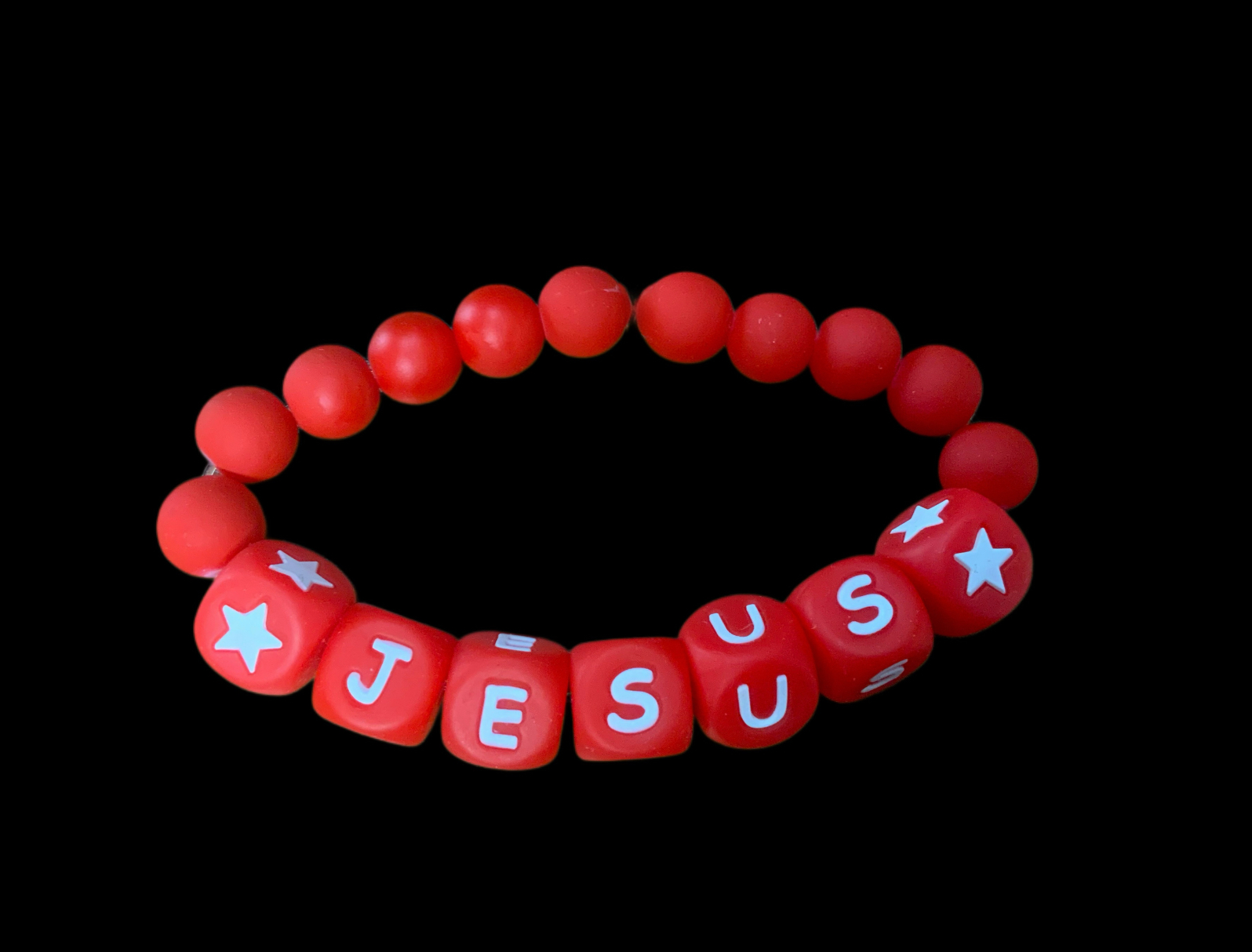 Handcrafted Bracelet “Jesus” w/ red letters, stars, and red beads