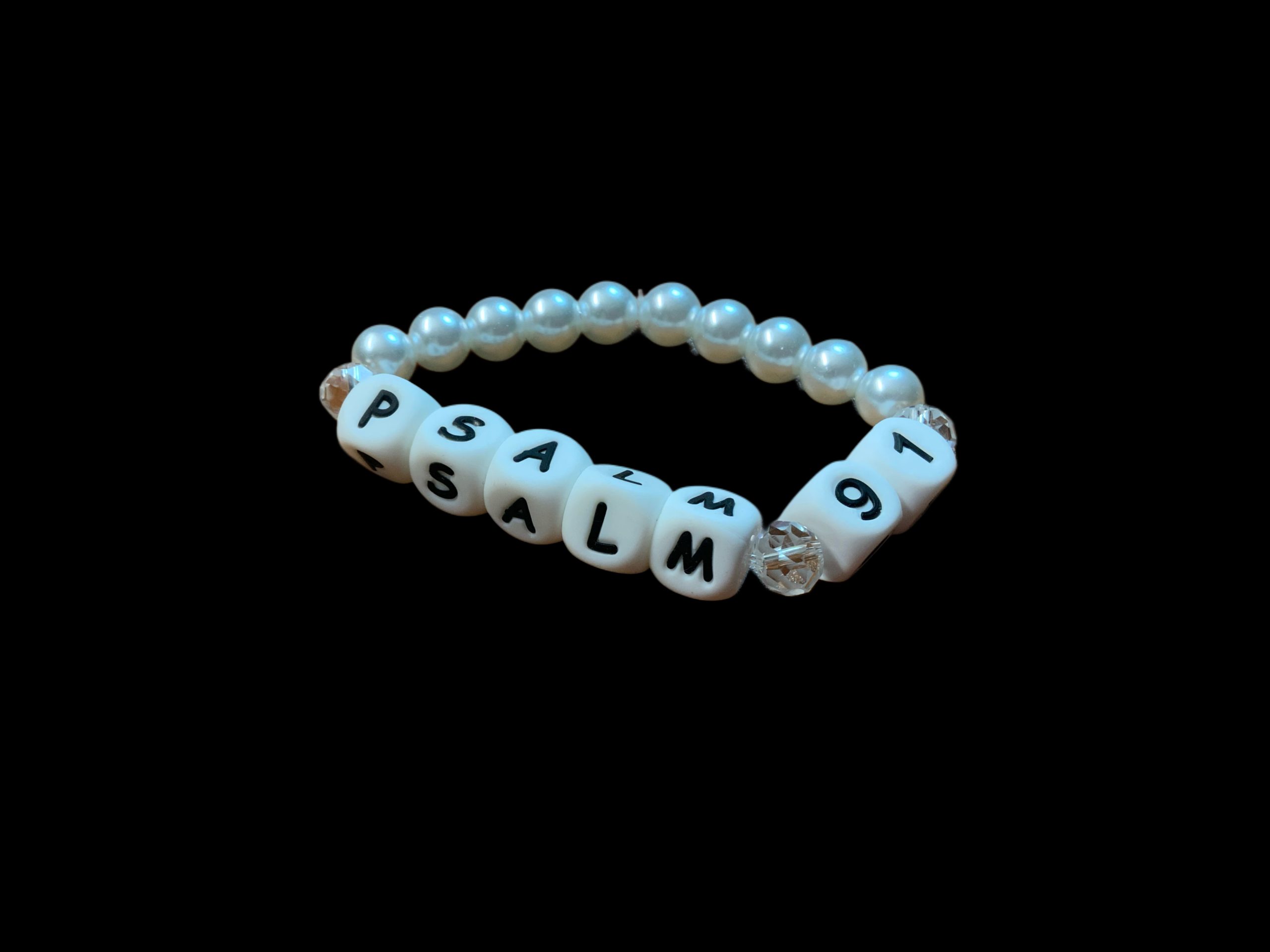 Embrace your faith with this exquisite handcrafted designer bracelet, featuring the powerful scripture “Psalm 91” to remind you that as a believer in JEsus Christ you have nothing to fear. You are under the wings of El Shaddai and safe and protected by God almighty. beautifully crafted. Each bracelet is meticulously made with lustrous pearl beads, offering a timeless elegance and a deep spiritual connection.